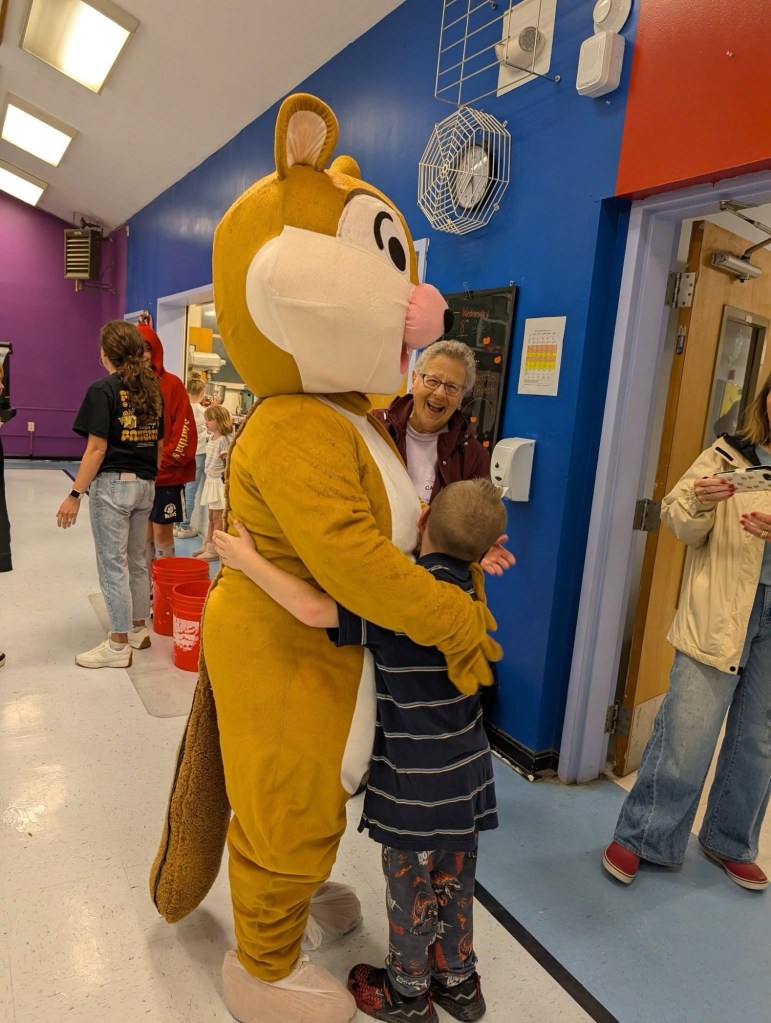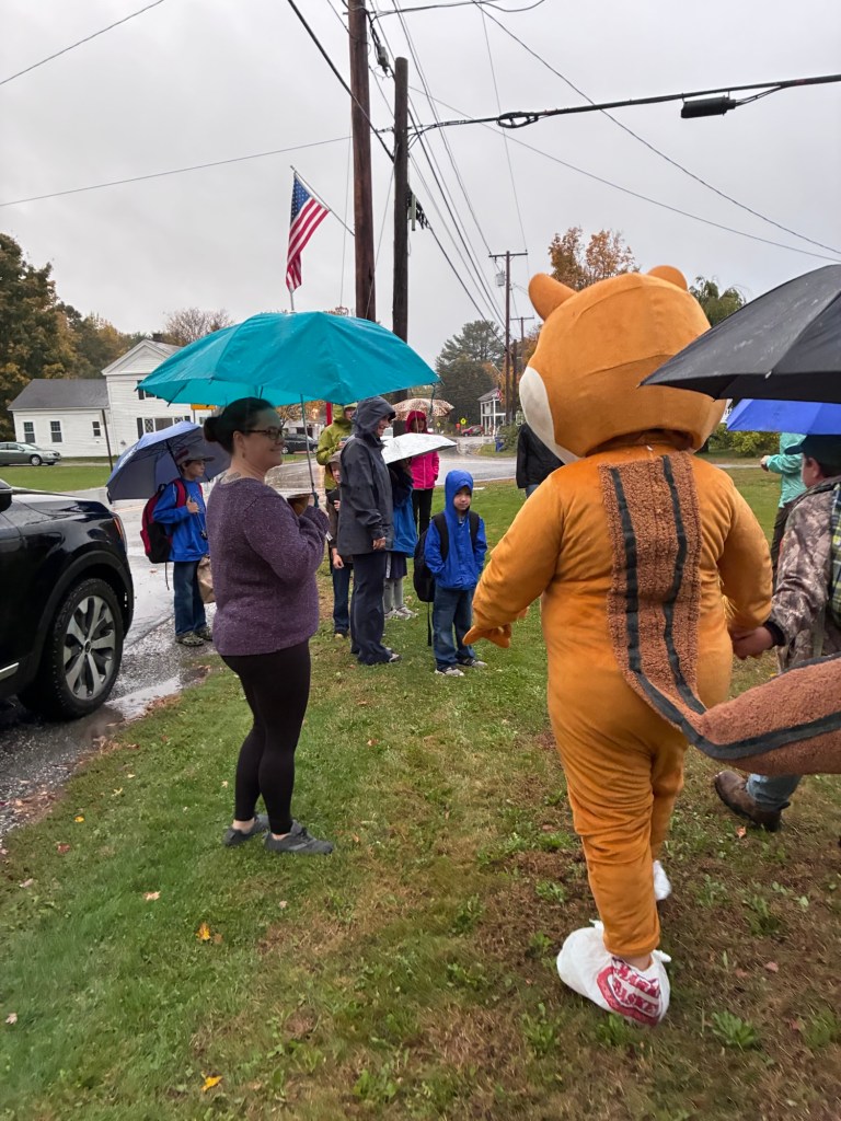 Boards of Trustee member Marybeth reading to the WVSWalk, Bike , Roll to school morning!